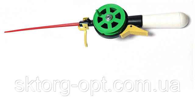 Якісна вудка для зимової риболовлі, пінопластова довга ручка з курком, відкрита котушка, ніжки відкидні. У складеному стані вона дуже компактна. Кінчик знімний, і під час транспортування його можна укласти зворотною стороною в спеціальний отвір, що істотно скорочує довжину для транспортування. Вудка виготовлена з морозостійкого пластику. На котушці встановлений курок. Пінопластова ручка зручна та не обморожує руки без рукавичок, так само зменшує вагу вудлища, що полегшує можливі часті або тривалі переходи на зимовій риболовлі.